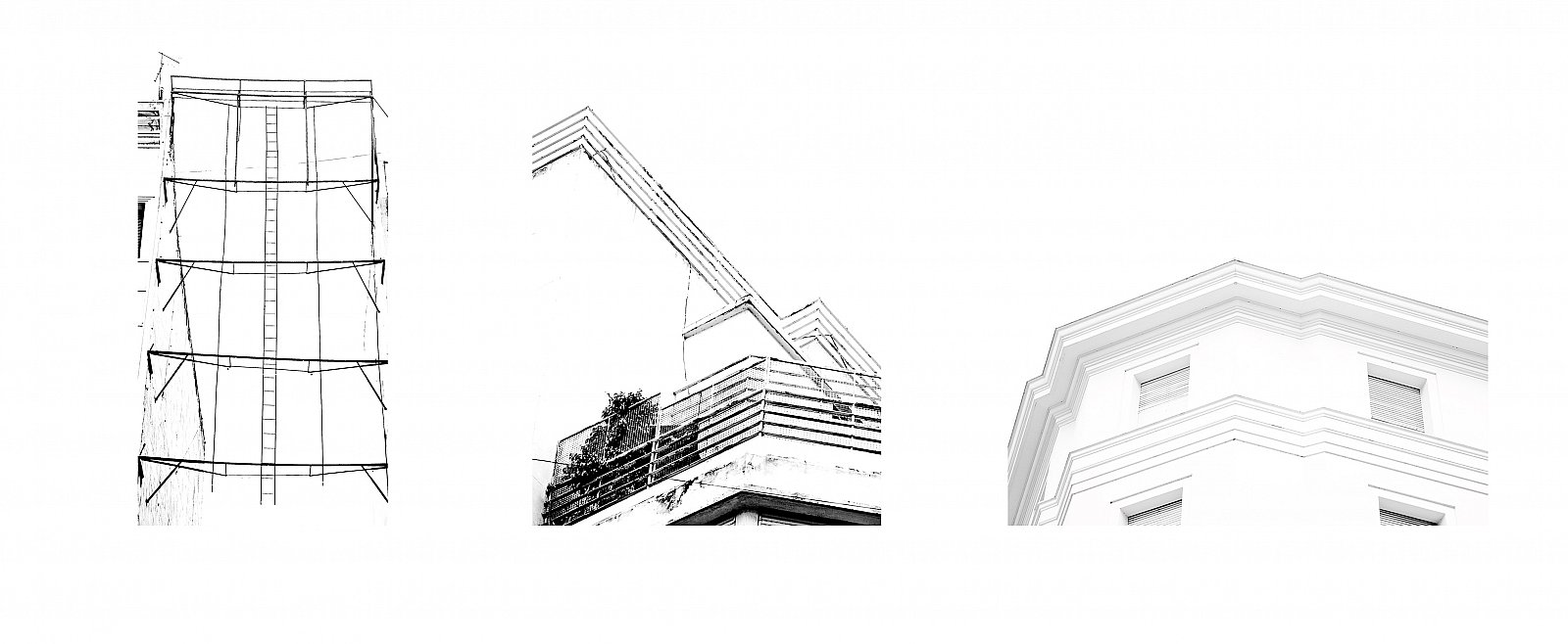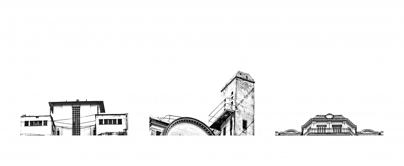 Un mismo tema y tres miradas. Una reinscripción de la realidad, juegos tácitos entre el espacio y el tiempo: líneas, siluetas, colores, momentos fugaces, lugares imaginarios: visibles y no, gigantescos rompecabezas que generan una trama.